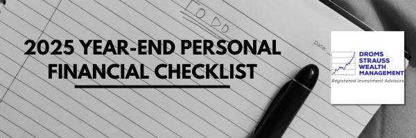 Looking to get organized before the end of the year? Here is our annual financial checklist to help get you started. As you are working through it, please do not hesitate to reach out to anyone here at Droms Strauss Wealth Management for assistance.